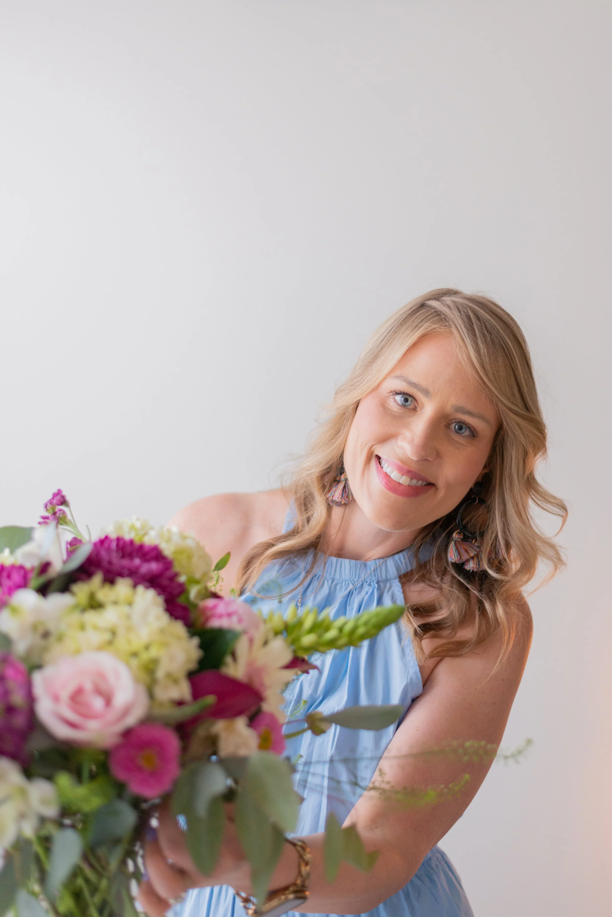Born and raised in the South, I carry with me a deep love for connection and hospitality. I’ve never met a stranger, and my extroverted spirit thrives on creating meaningful moments for my clients. Whether I’m crafting a bouquet for a bride’s big day or designing an arrangement to brighten someone’s home, I pour my heart into every petal.